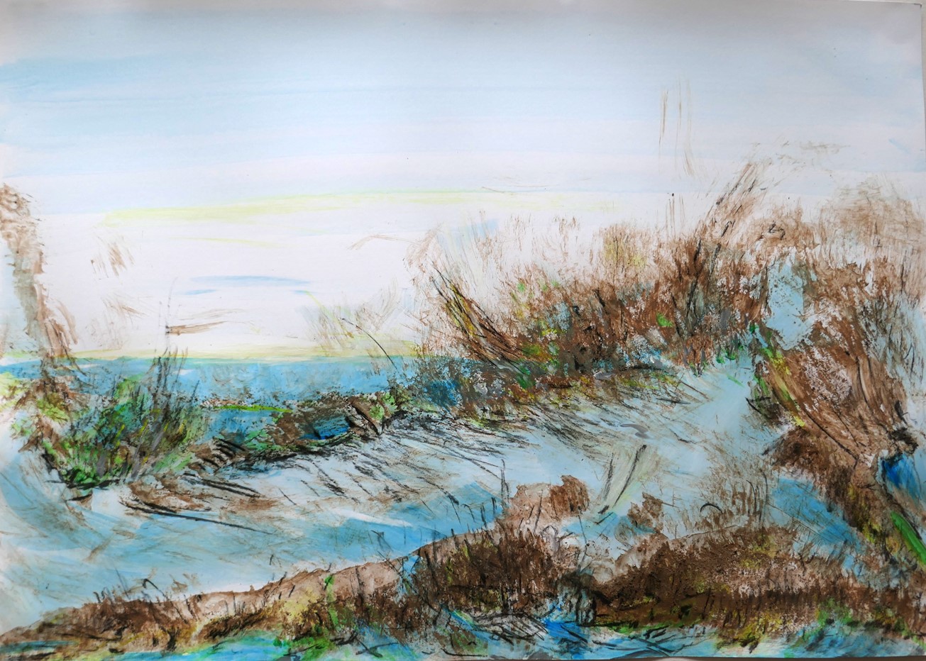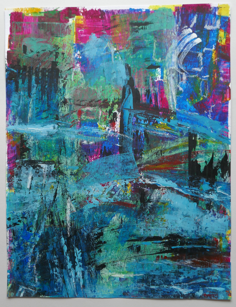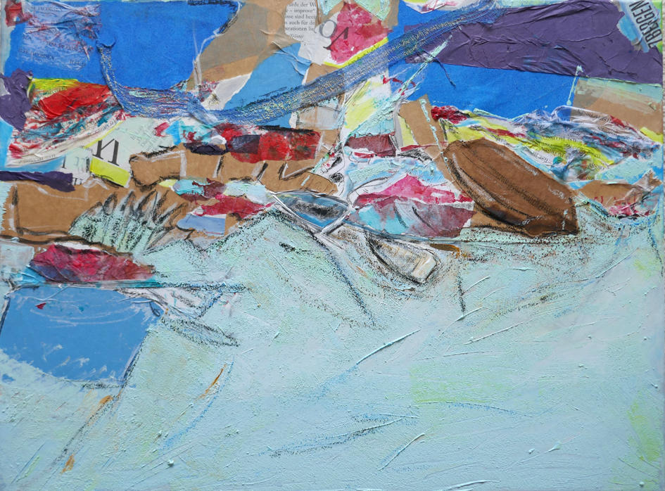 Überwiegend arbeite ich mit Acrylfarben und Mischtechniken, mit denen ich sehr intuitiv umgehe; auch Vorlagen wie eigene Fotos, (Urlaubs) – eindrücke inspirieren mich beim Tun.